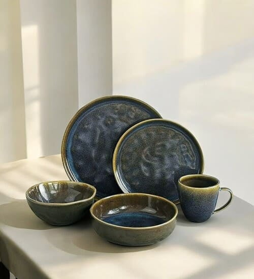 Controlled chemical reactions during kiln firing create unique textures and color variations, delivering a bespoke, studio-pottery aesthetic.